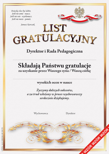 List gratulacyjny dla rodziców format: A4 jednostronny Wykonany na specjalnym matowym papierze do drukarek atramentowych.