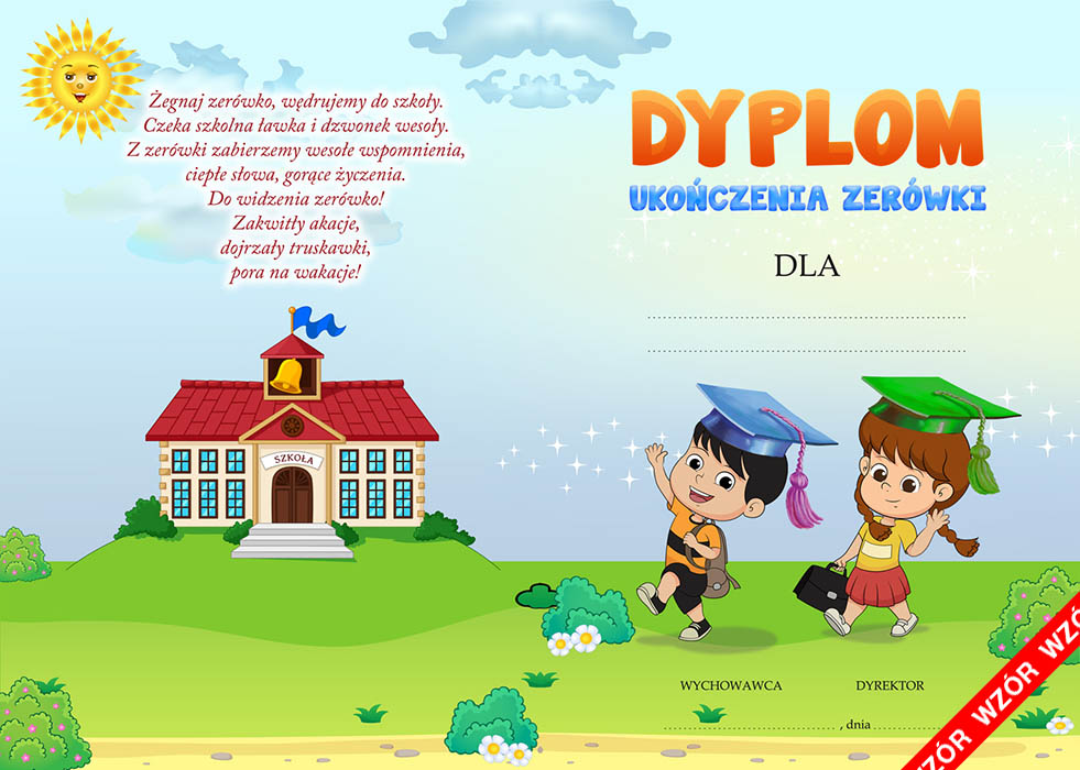 Dyplom ukończenia zerówki format: B5 po złożeniu (rozkładany)