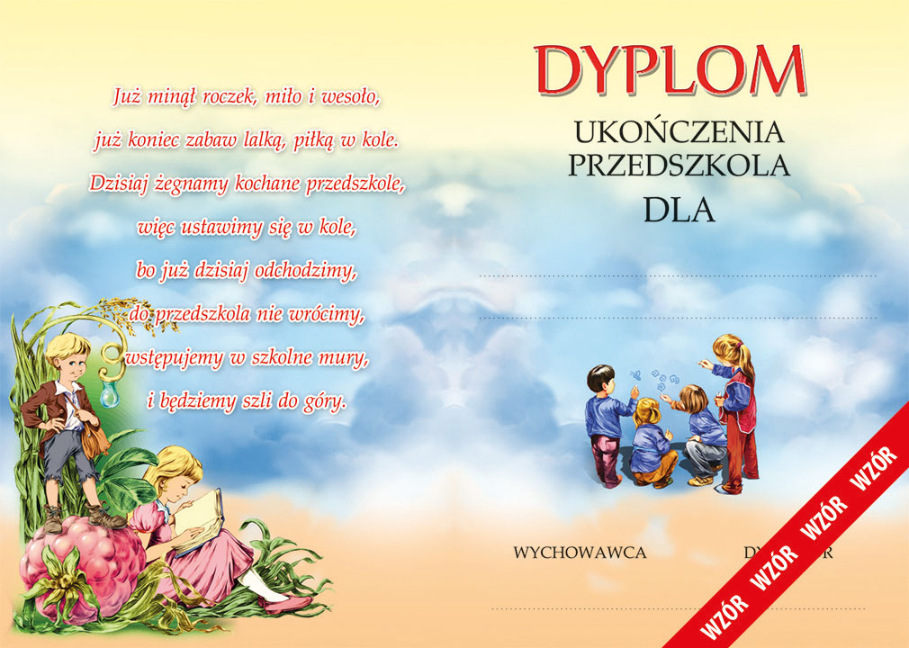 Dyplom ukończenia przedszkola format: B5 po złożeniu (rozkładany)